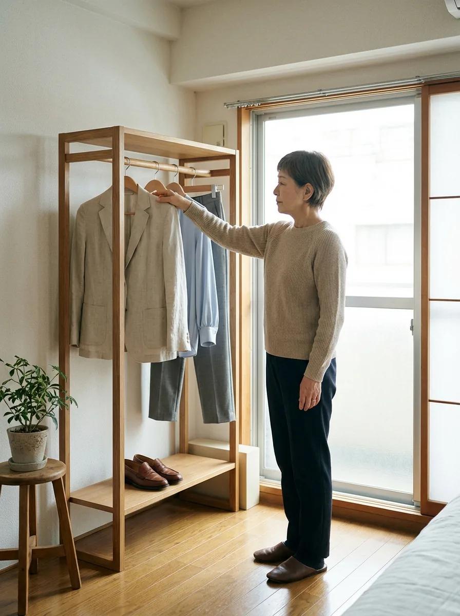 毎朝の服選びは、小さくても意思決定です。役割が似た服が多いと、迷いだけが増えやすくなります。