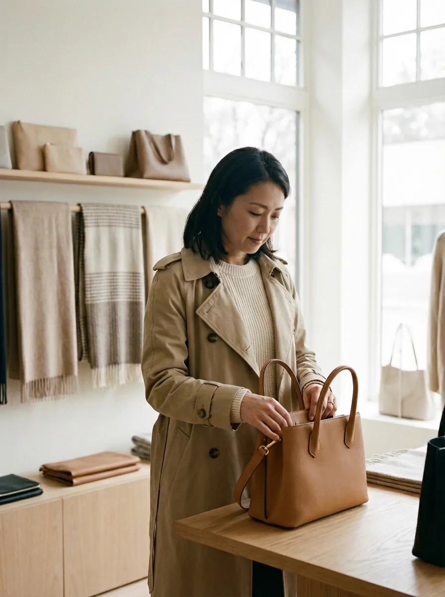 中古ブランドバッグで後悔しやすいのは、買う瞬間は満足でも、家に帰って自分の服と合わせたときに違和感が出るパターンです。 日常服になじみやすいのは、ブランド名よりも「輪郭」と「光り方」が強すぎないバッグです。 特に最初の一つは、見る人がすぐブランドを読むものより、 服の空気に自然に溶けるものの方が使う頻度が上がります。